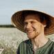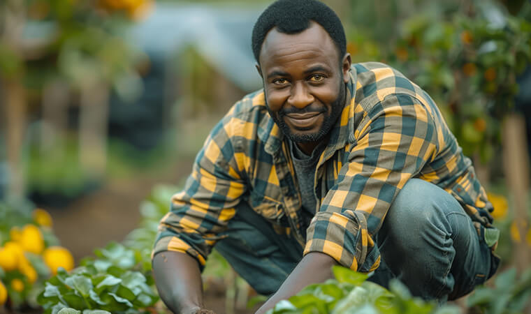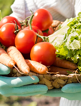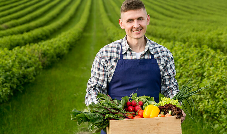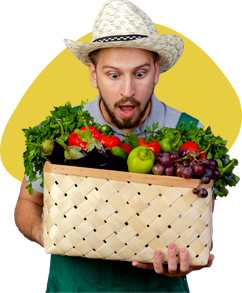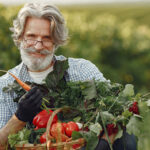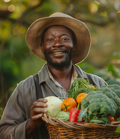 CloseUp Old Farmer Holding Baskets Vegetable